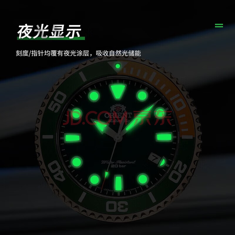 商品相册:ORIENT手表男全自动机械表200米潜水表东方双狮夜光男士手表RA-AC0K04E第
