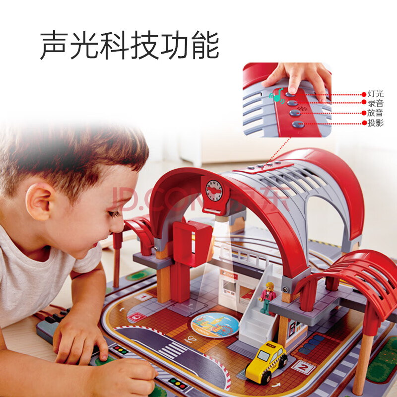 商品相册:Hape(德国)儿童早教玩具火车轨道声光豪华城市火车站男女孩礼物E3725第