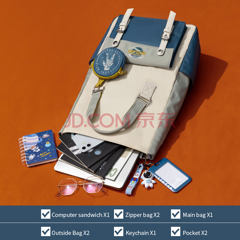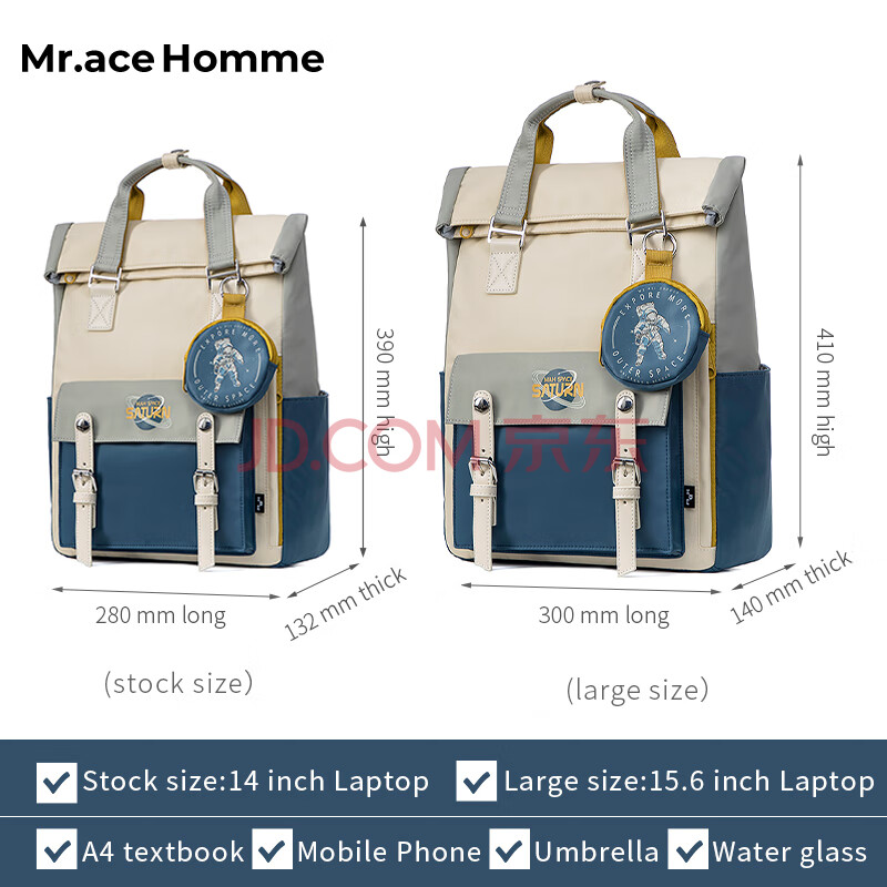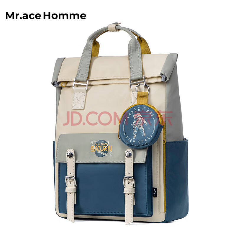 商品相册:Mr.ace Homme星球系列 双肩包女学生书包休闲百搭电脑包通勤背包男星球蓝大号第