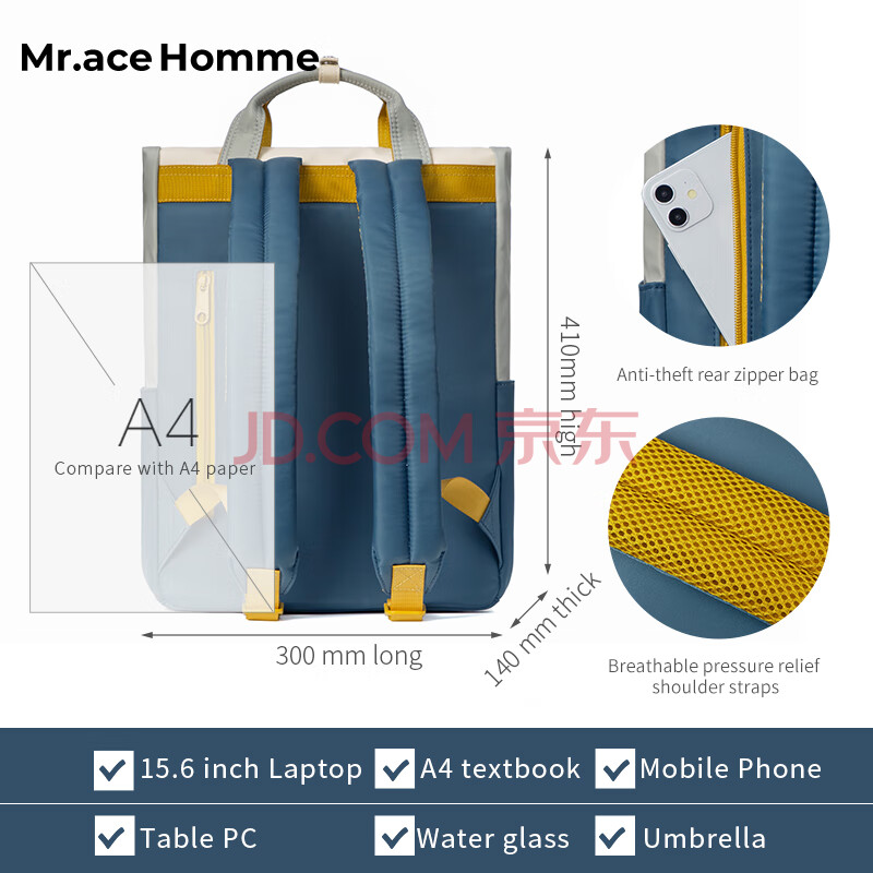 商品相册:Mr.ace Homme星球系列 双肩包女大学生休闲百搭电脑包工装风背包书包男 星球蓝第