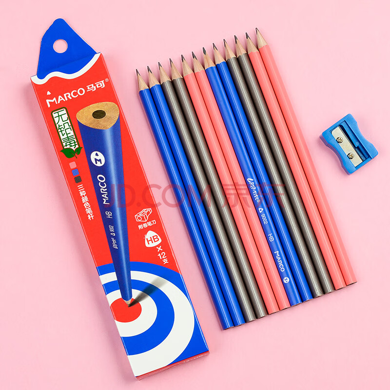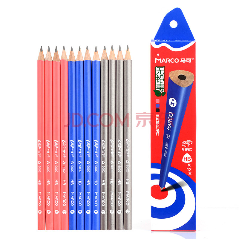 商品相册:马可(MARCO)时尚系列学生书写铅笔(HB) 时尚多彩三角笔杆办公文具 12支盒装9002-HB 速写 马克笔绘画第