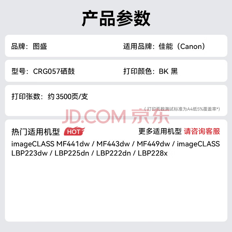 商品相册:图盛CRG057硒鼓适用佳能MF443dw硒鼓Canon MF441dw MF449dw LBP222dn 223dw 225dn 228x打印机粉盒墨盒CRG057H第