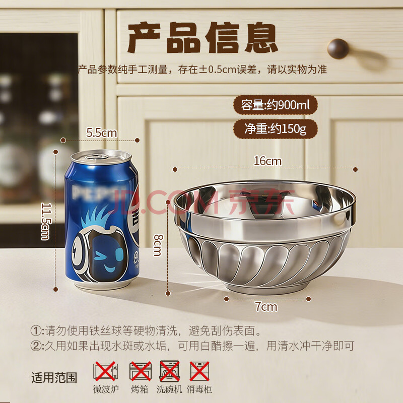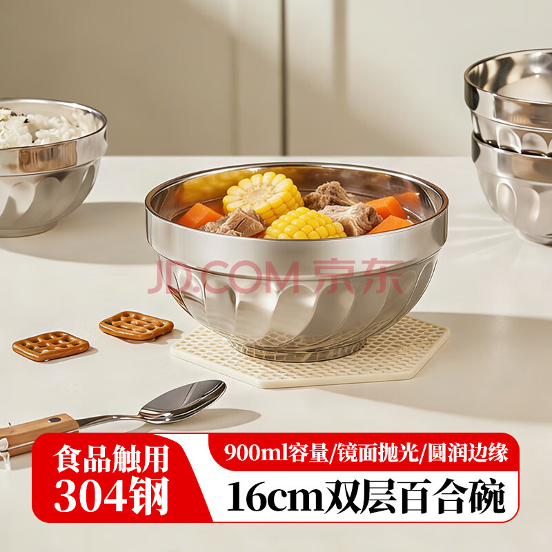 商品相册:美厨(MAXCOOK)304不锈钢碗16CM 汤碗餐具面碗 双层隔热 MCWA9617第