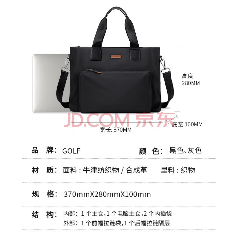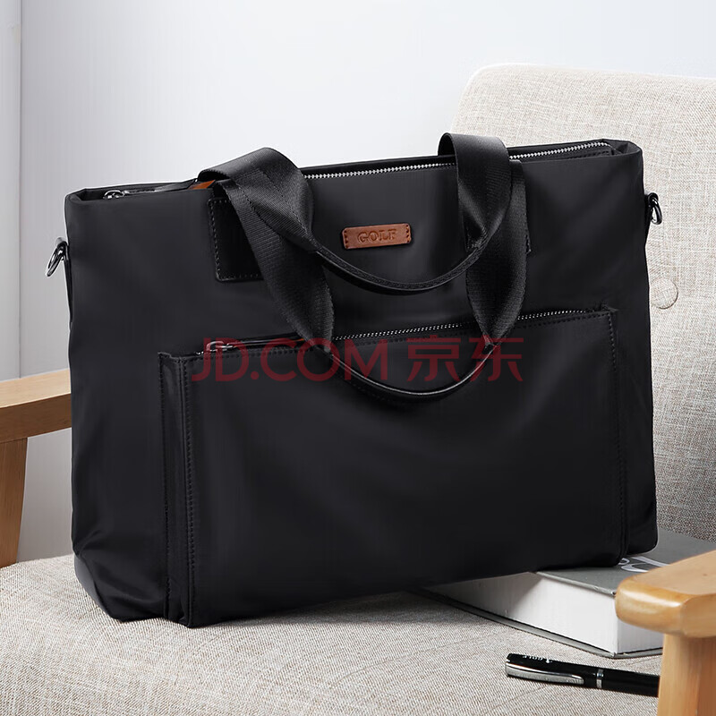 商品相册:高尔夫GOLF商务公文包男士大容量手提包男15英寸笔记本电脑包轻便休闲单肩斜挎包横款公事包5I768317J黑色第