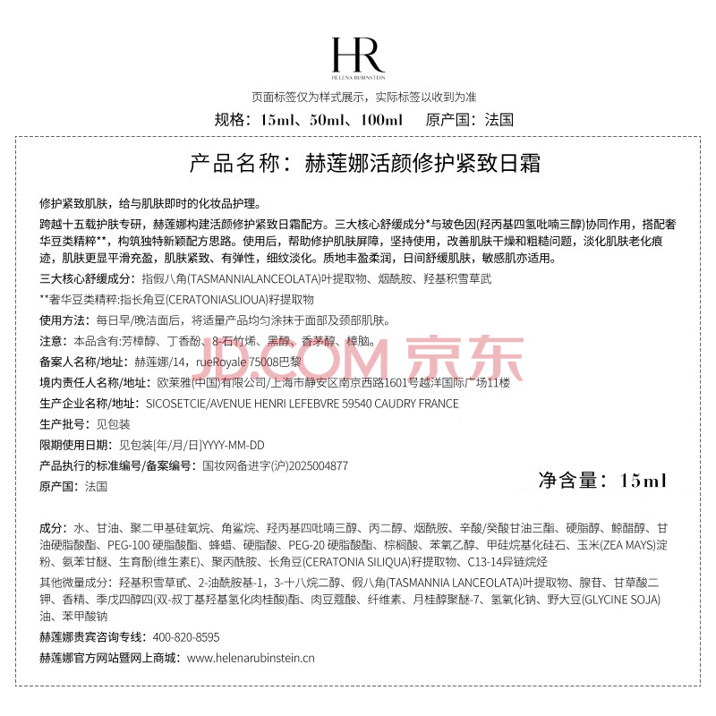 商品相册:赫莲娜HR白绷带面霜15ml保湿修护紧致护肤品化妆品礼盒生日礼物送女友第