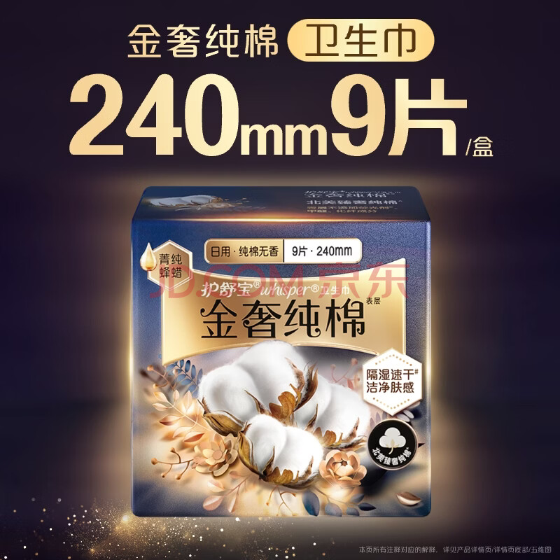 商品相册:护舒宝金奢纯棉卫生巾日用240mm9片姨妈巾超薄透气京东自营官方旗舰第