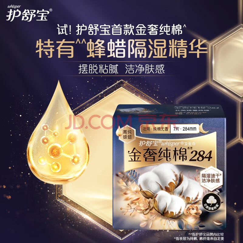商品相册:护舒宝金奢纯棉卫生巾日用284mm7片姨妈巾超薄透气京东自营官方旗舰第
