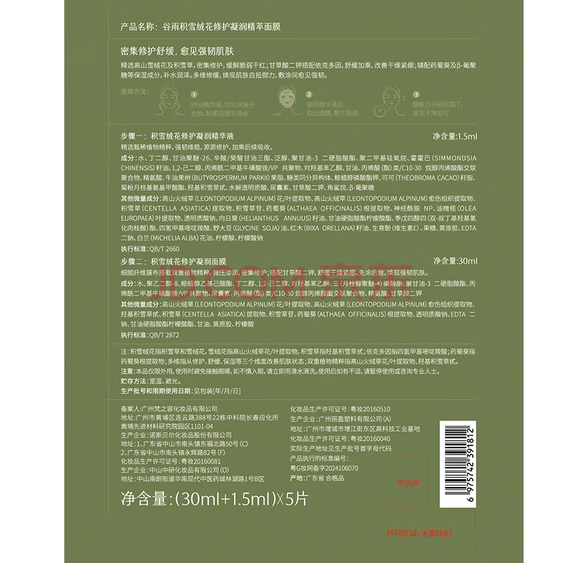 商品相册:谷雨雪绒奶皮面膜补水面膜保湿舒缓修护维稳化妆品第