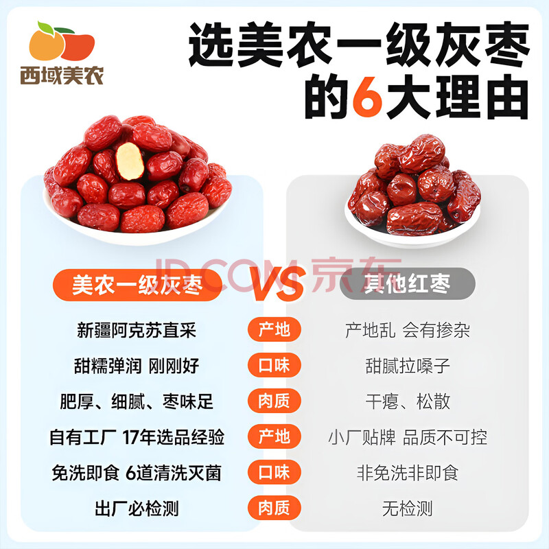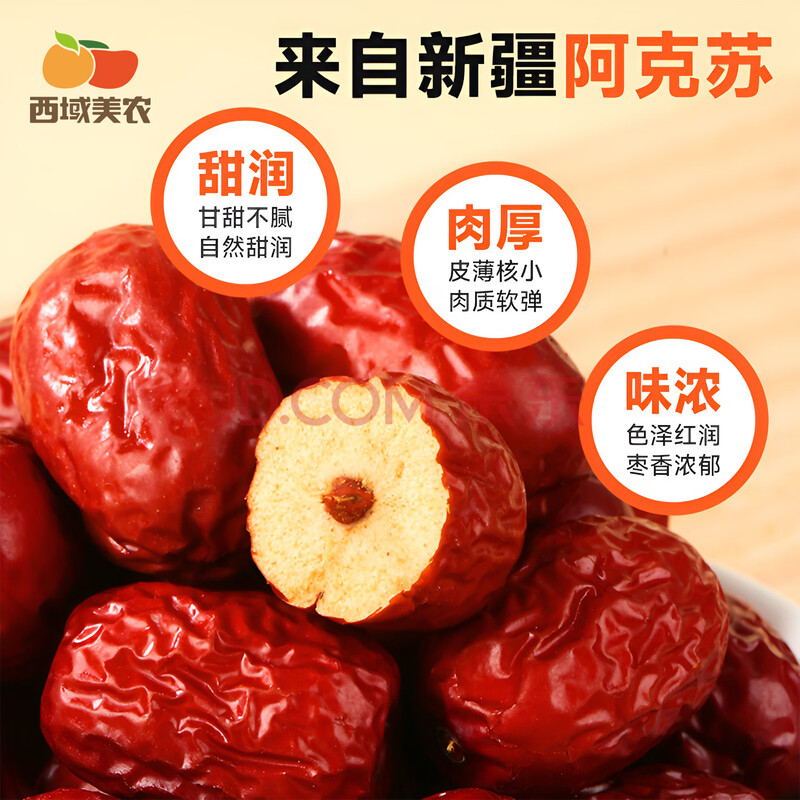 商品相册:西域美农一级灰枣2500g 新疆灰枣5斤量贩装自然吊干免洗小红枣第