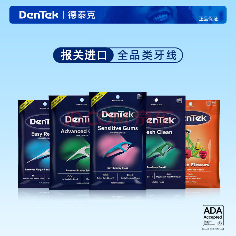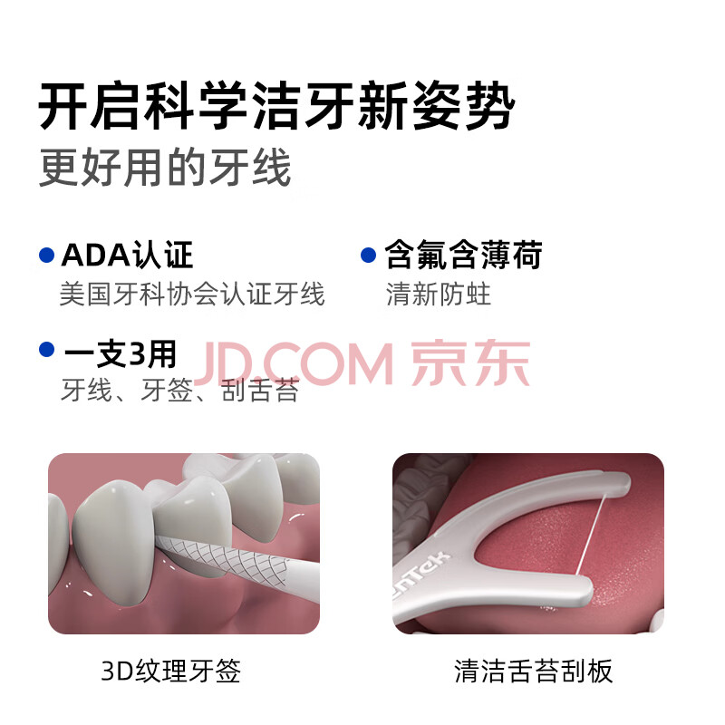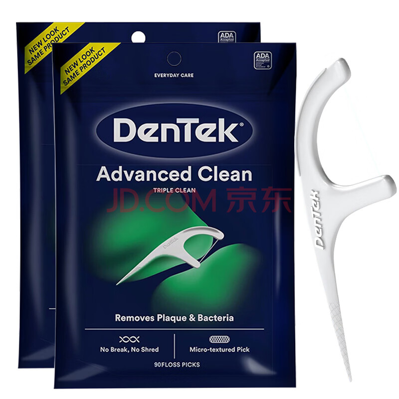 商品相册:德泰克DenTek牙线棒 圆线牙签线超细滑 成人剔牙线盒薄荷味家庭装90支*2第