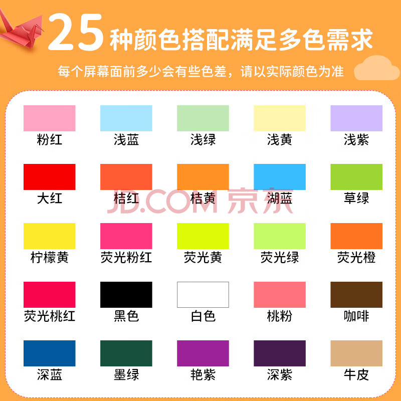 商品相册:科朗鑫盛【开学必备】a4彩色手工纸幼儿园儿童卡纸复印纸彩色剪纸彩印纸彩打纸 A4 25色【100张】含黑白第