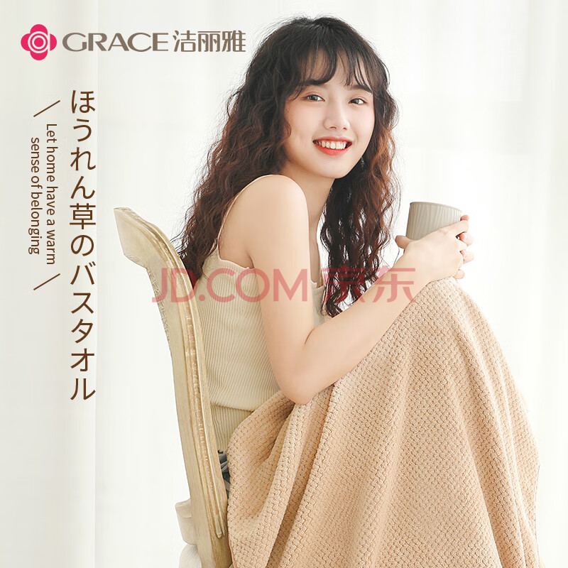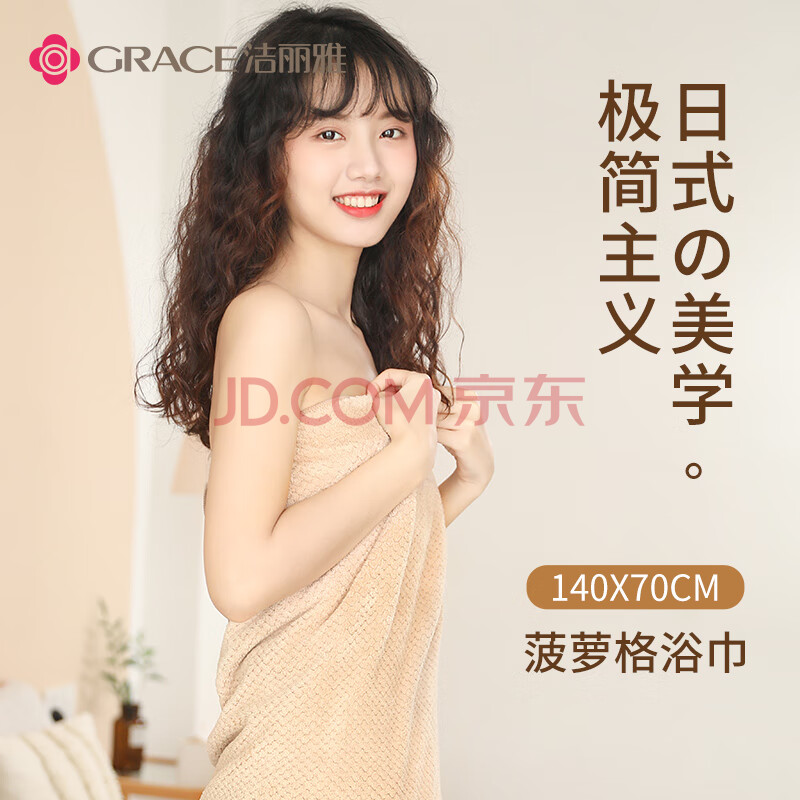 商品相册:洁丽雅(Grace)菠萝格浴巾女可裹家用吸水速干情侣男大人毛浴巾140*70cm 浅咖色第