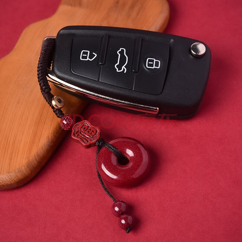 商品相册:灵菲朱砂平安扣福牌车钥匙扣马年本命年节日挂件男女生日礼物证书第1张/共8