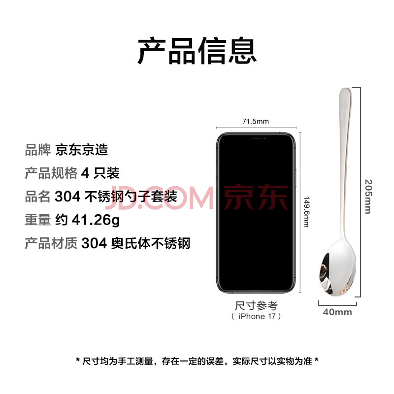 商品相册:京东京造 勺子 汤饭勺304不锈钢食品接触级餐具套装【加厚用料】4只装第