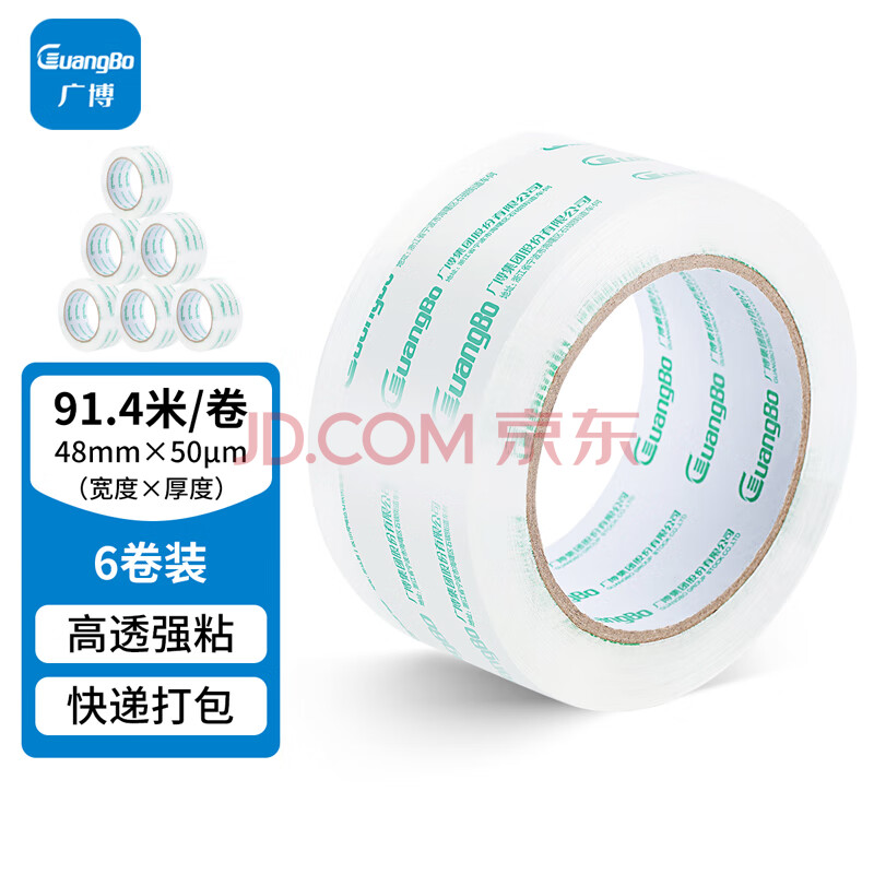 商品相册:广博(GuangBo)防风高透明胶带宽胶带 6卷装48mm*100y*50μm 91.4米/卷封箱胶带胶布办公文具FX-61第