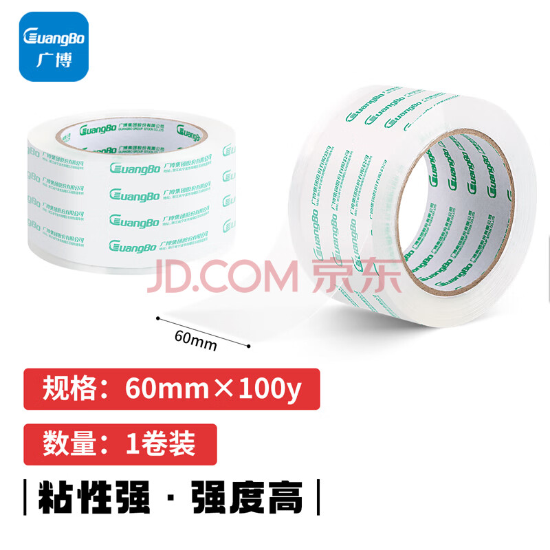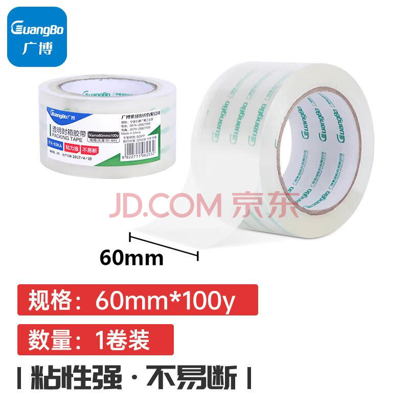 商品相册:广博防风高透明胶带宽胶带60mm*100y*50μm 91.4米/卷封箱胶带打包胶带高品质强粘防风办公文具FX-63第