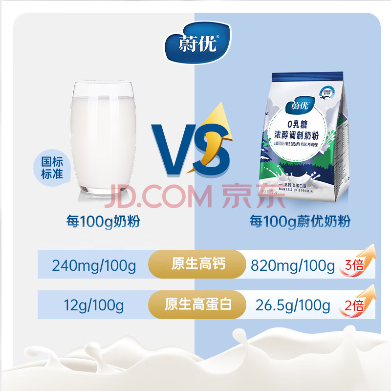 商品相册:蔚优0乳糖高钙高蛋白浓醇牛奶粉中老年成人孕妇学生通用700g/袋第