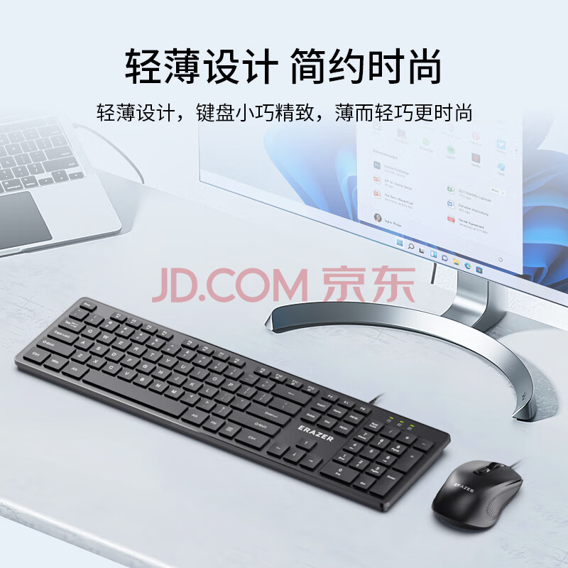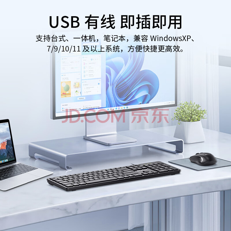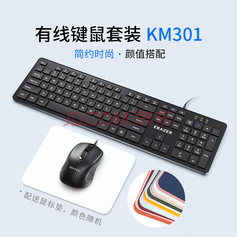商品相册:联想生态品牌异能者 有线键盘鼠标套装 键鼠套装鼠标垫 全尺寸防泼溅 商务办公台式/小新适用 黑KM301第