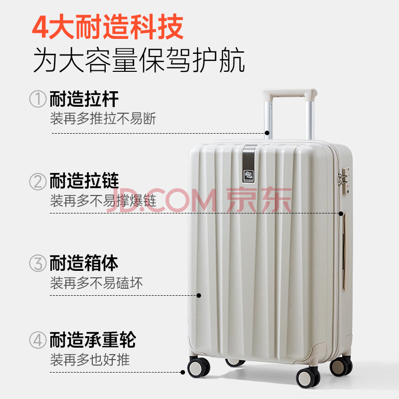 商品相册:汉客行李箱女拉杆箱男大容量双层拉链密码旅行箱29英寸白 102升巨能装第