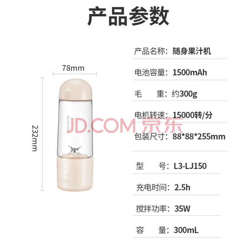 商品相册:九阳(Joyoung)榨汁机 便携式网红充电迷你无线果汁机料理机随行杯生节日礼物 L3-LJ150(粉)第