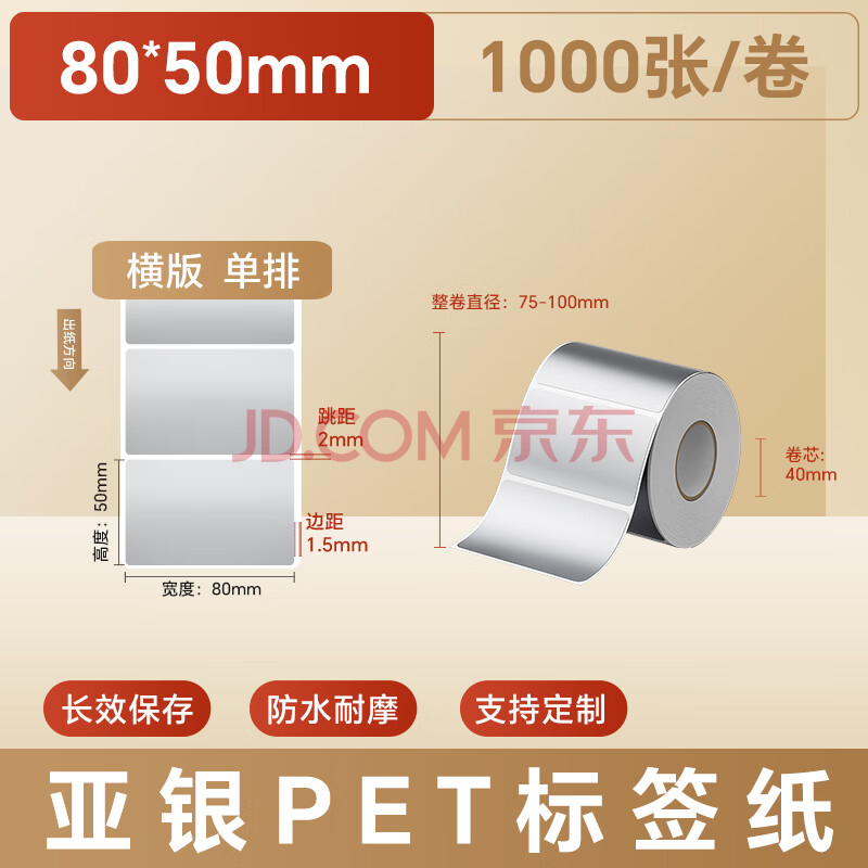 商品相册:火匠 亚银标签纸 哑银PET不干胶条码打印纸 固定资产标签 支持定制 80mm*50mm*1000张第