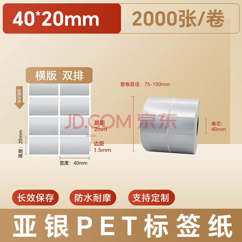 商品相册:火匠 亚银标签纸 哑银PET不干胶条码打印纸 固定资产标签 支持定制 40mm*20mm*2000张第