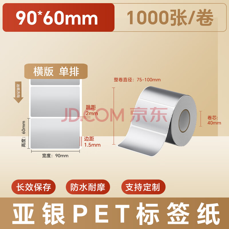 商品相册:火匠 亚银标签纸 哑银PET不干胶条码打印纸 固定资产标签 支持定制 90mm*60mm*1000张第