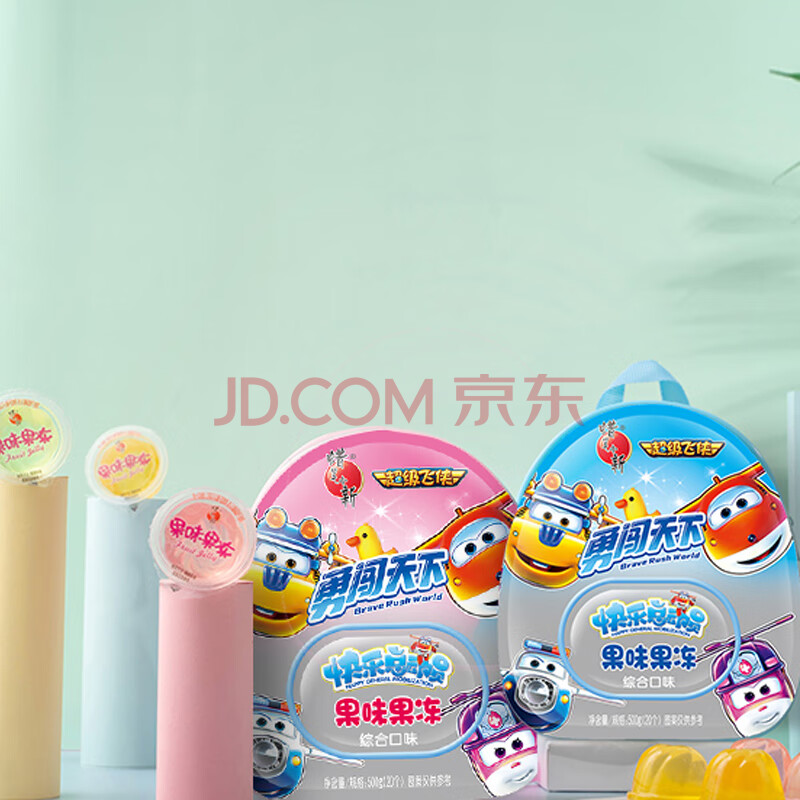 商品相册:蜡笔小新 超级飞侠果冻 500g 儿童背包 多口味 零食礼包 2款随机发第
