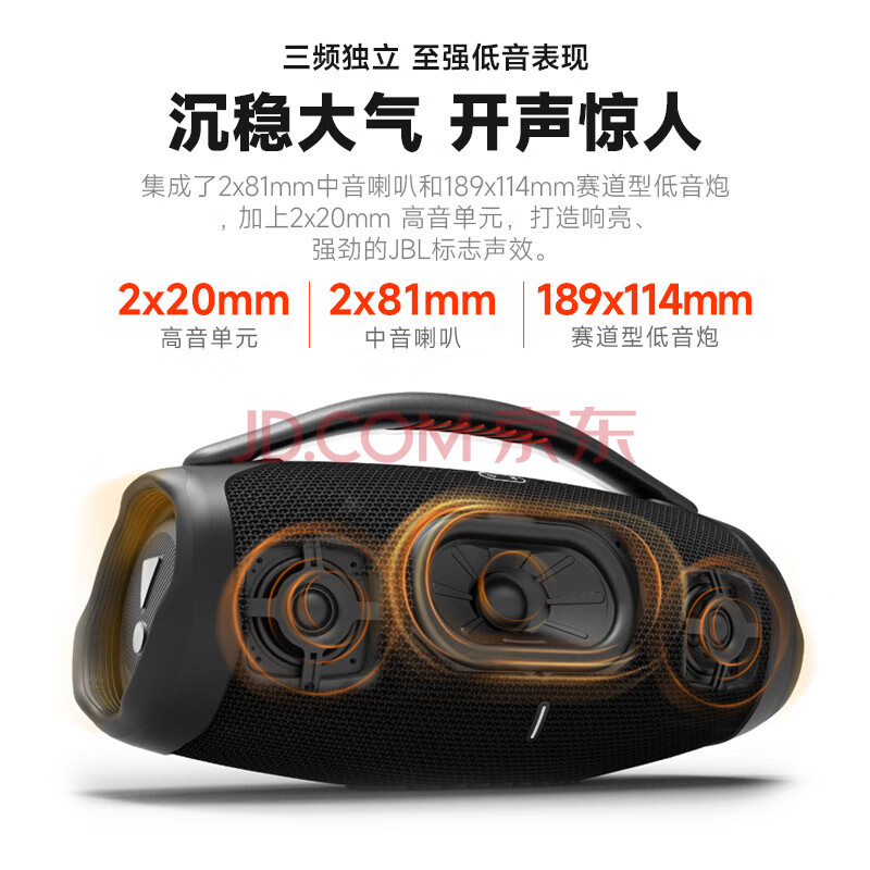商品相册:JBL BOOMBOX3 音乐战神三代便携蓝牙音箱 低音炮户外音箱 防尘防水 Hifi桌面音响迷彩色 购物推荐第