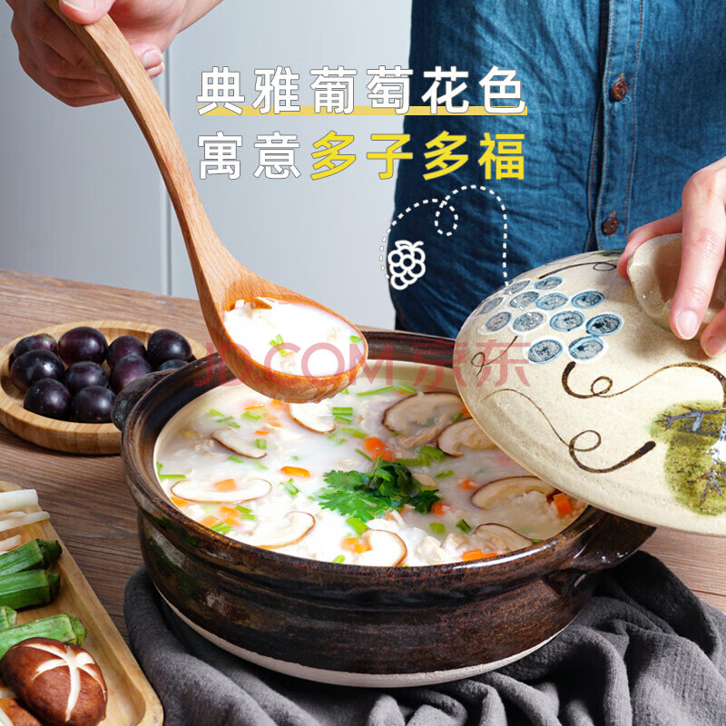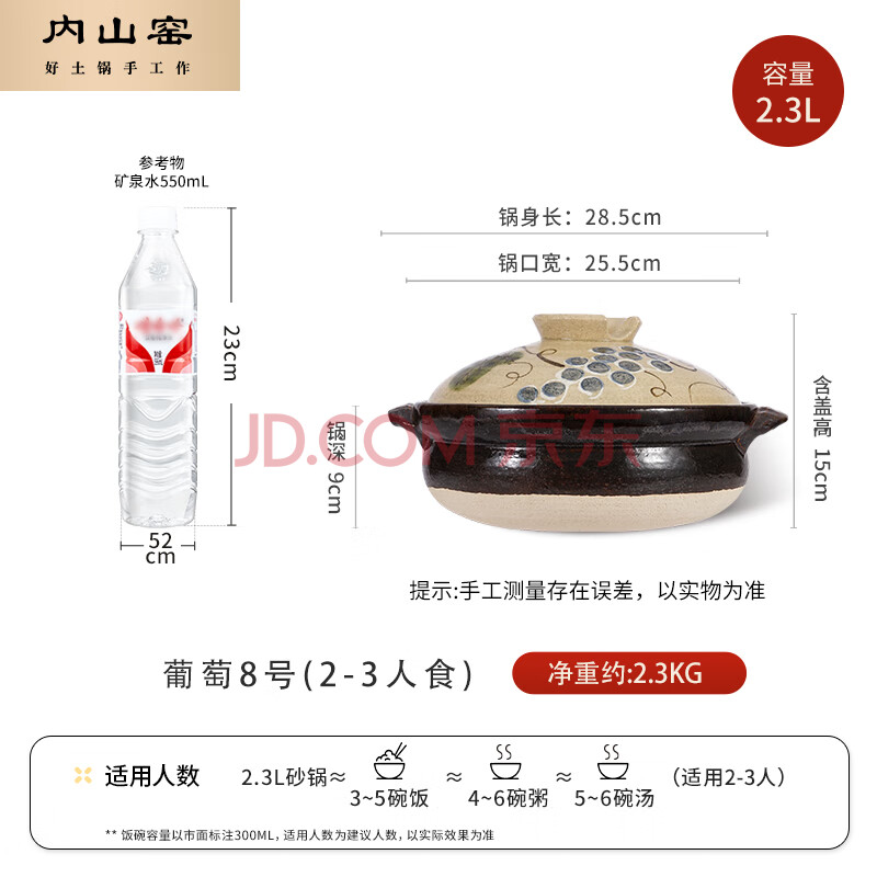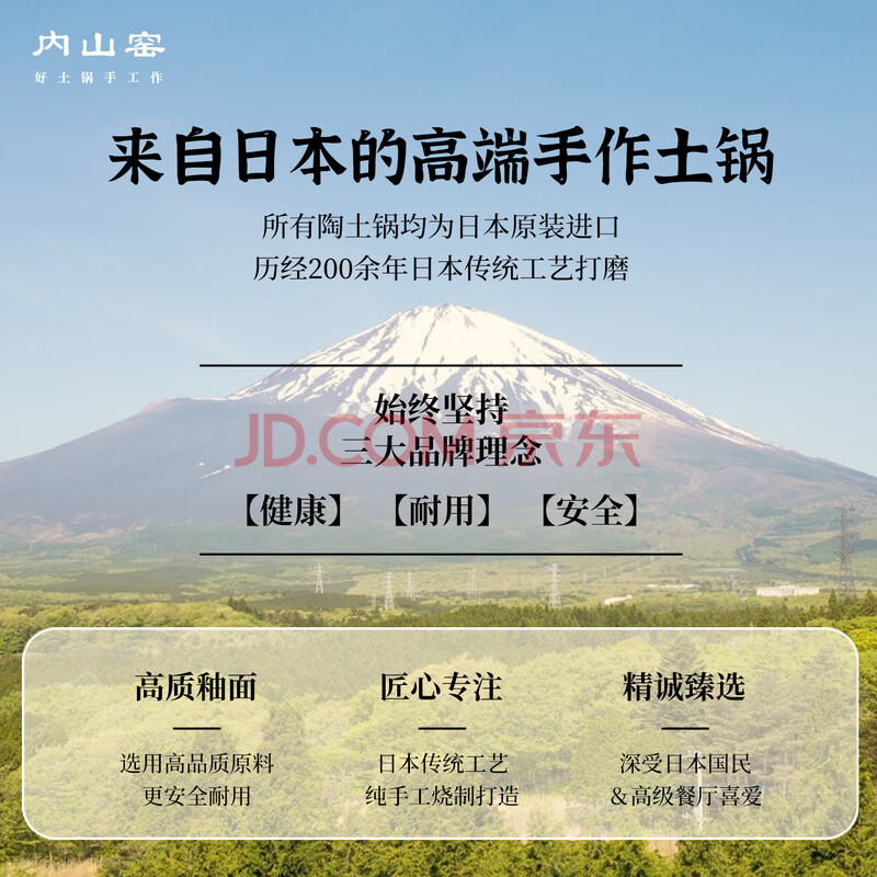 商品相册:内山窯日本进口砂锅煲汤锅耐高温不开裂2.3L通用沙锅宽口炖锅陶瓷锅第