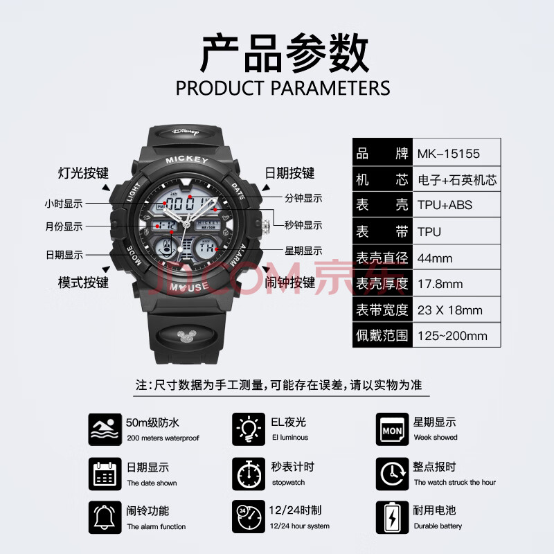商品相册:迪士尼(Disney)米奇联名运动电子表多功能防水手表初高中学生儿童开学生日礼物第1张/共9