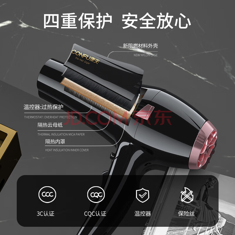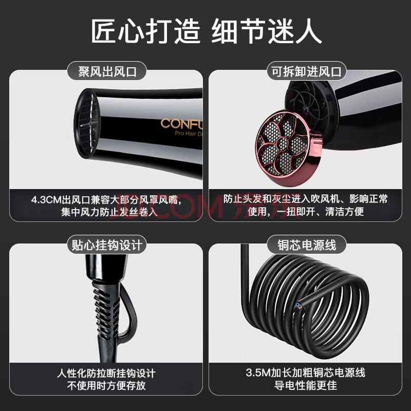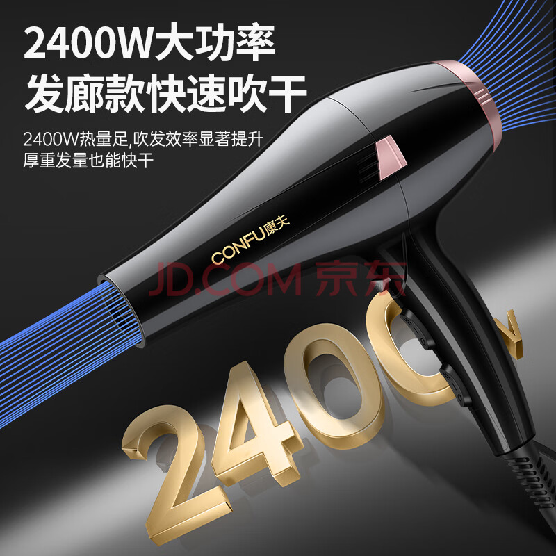 商品相册:康夫(CONFU)电吹风机家用2400W大功率恒温护发大风力快速干发理发店发廊生日礼物吹风筒KF-8946第