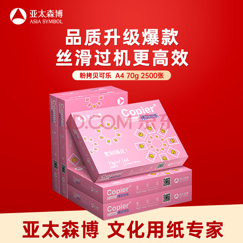 商品相册:亚太森博拷贝可乐A4打印纸 70g 500张*5包 双面打印不透印 复印纸 整箱2500张【专业造纸厂牌】第