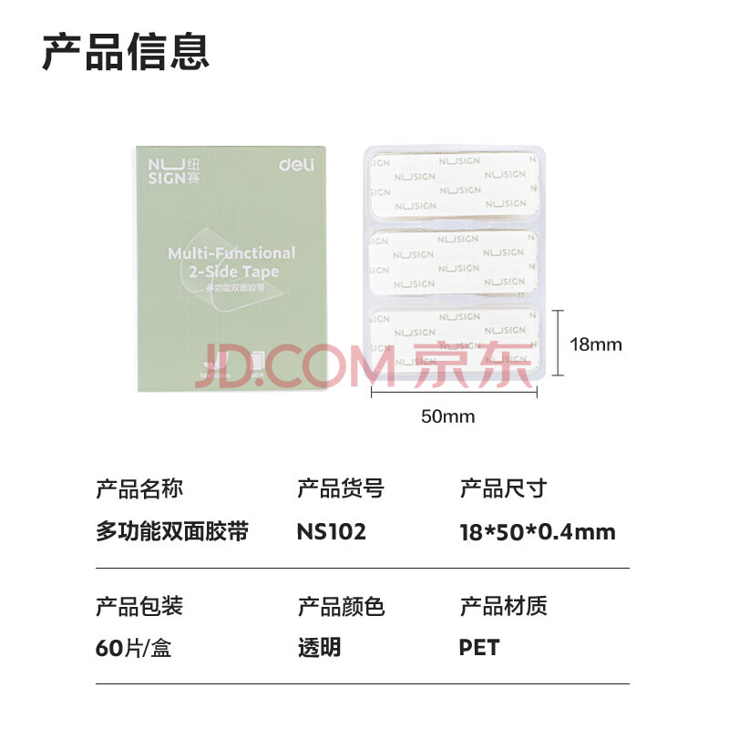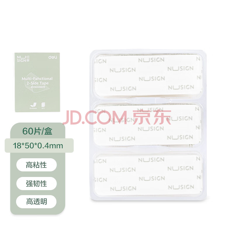 商品相册:纽赛(NUSIGN)强力双面胶春联专用纳米胶带 海报贴随手贴 家用车用透明胶带 60片 NS102第1张/共7