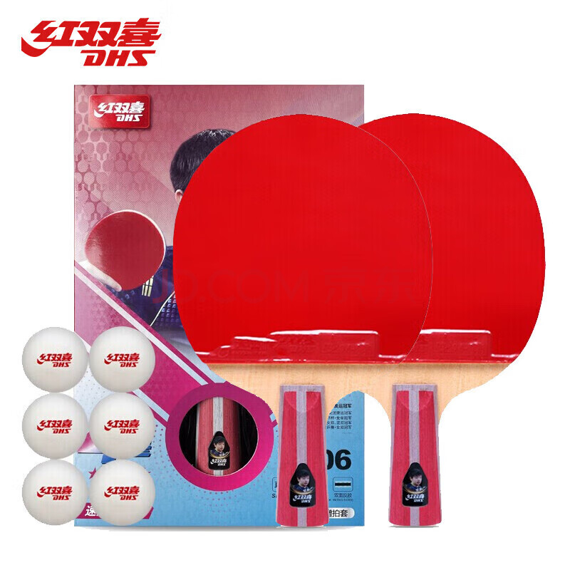 商品相册:红双喜(DHS)乒乓球拍四星级直拍对拍H4006套装附拍包+乒乓球第
