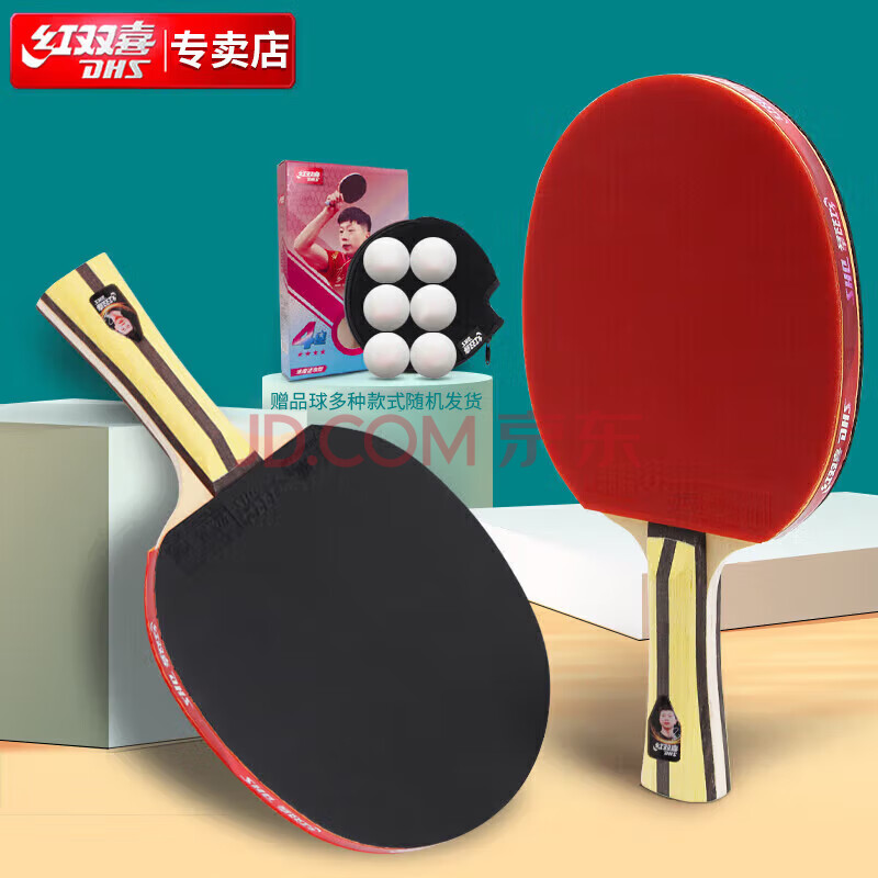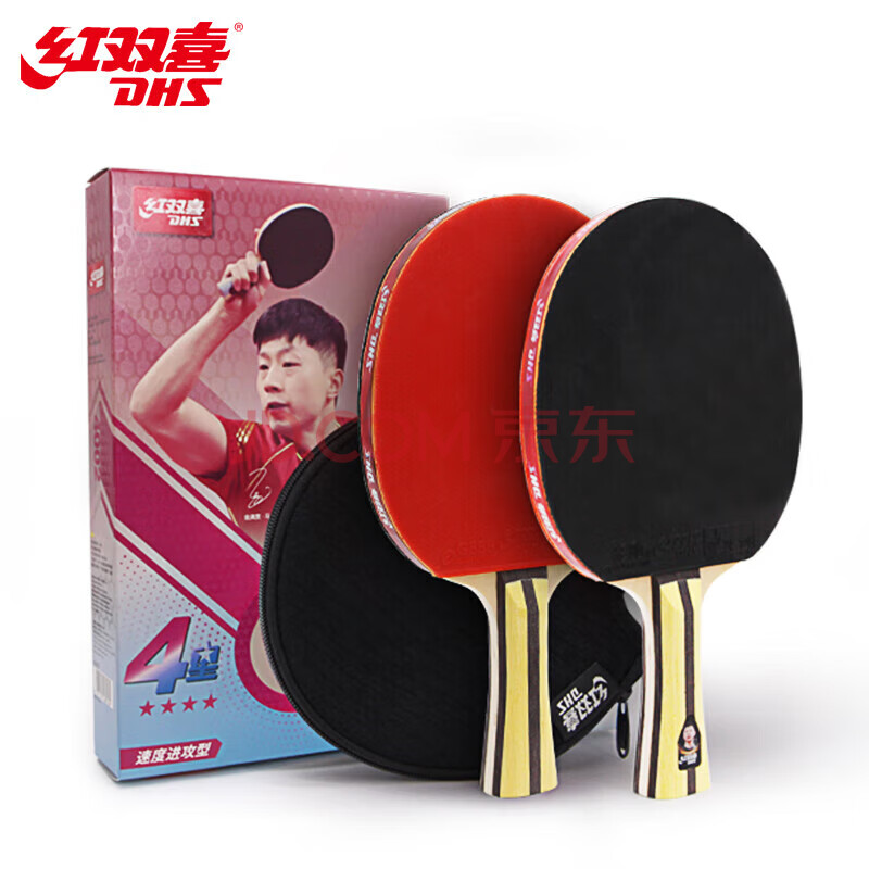 商品相册:红双喜四星狂飚3四星级乒乓球拍比赛成品拍附球包乒乓球(H4星横对拍)第