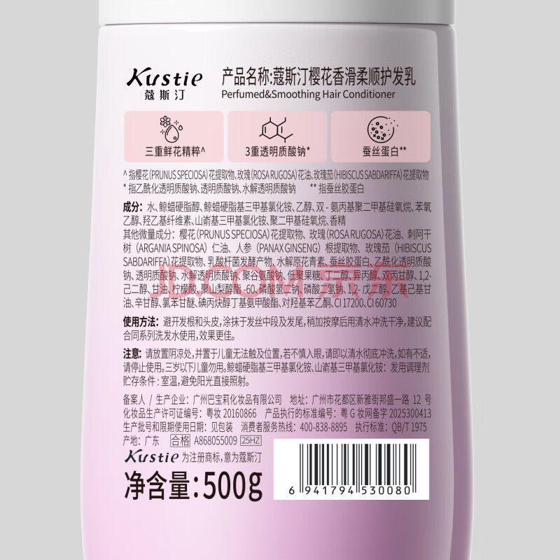 商品相册:蔻斯汀Kustie 樱花香滑柔顺护发乳500g 持久留香滋润柔滑护发素润发乳第