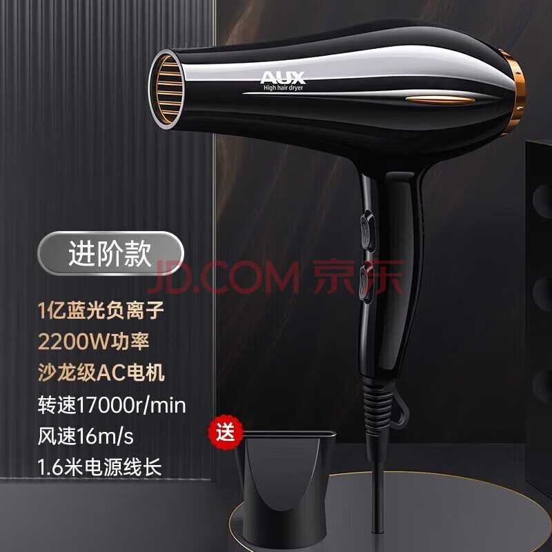 商品相册:奥克斯(AUX)吹风机家用大功率2200W吹风筒蓝光负离子恒温速干大风力理发店专用吹头发发廊级电风吹第