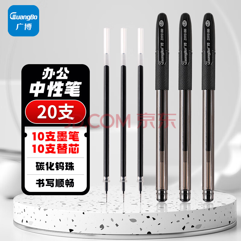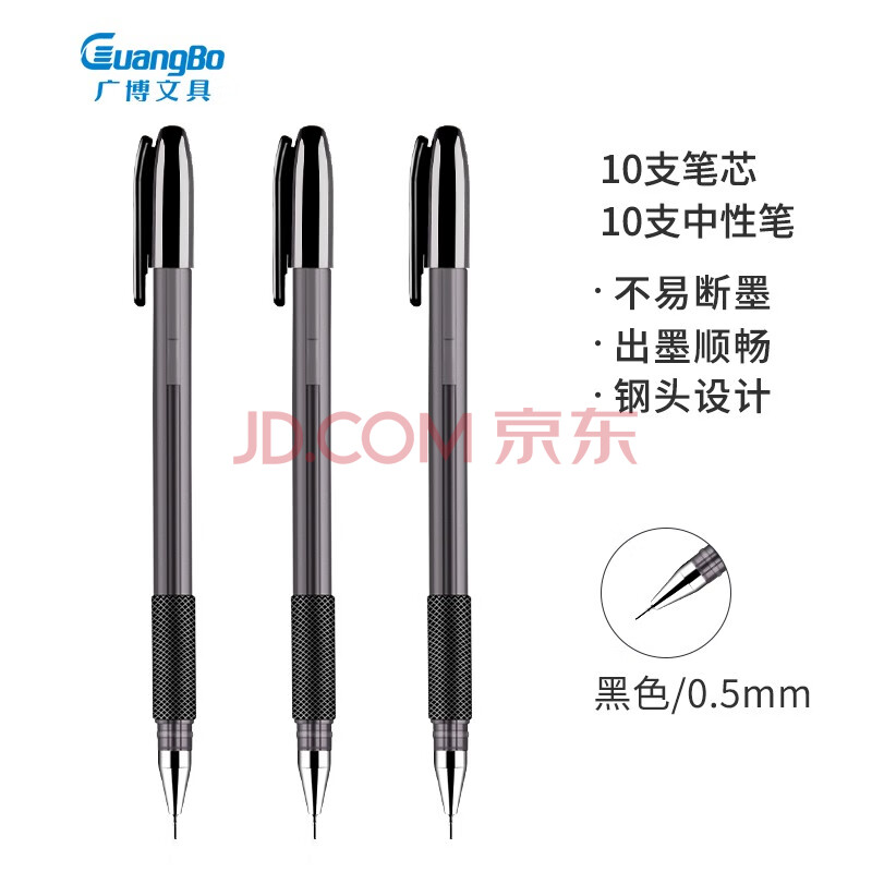 商品相册:广博(GuangBo)(GuangBo)0.5mm黑色中性笔 学生全针管水笔(10笔+10芯)学习办公会议黑色签字笔 ZX9518D第