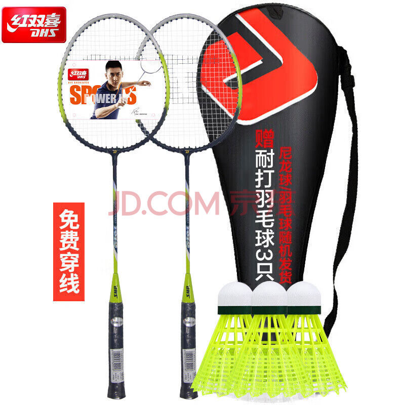 商品相册:红双喜羽毛球拍对拍入门羽拍2支套装1012墨绿色对拍含羽毛球手胶第