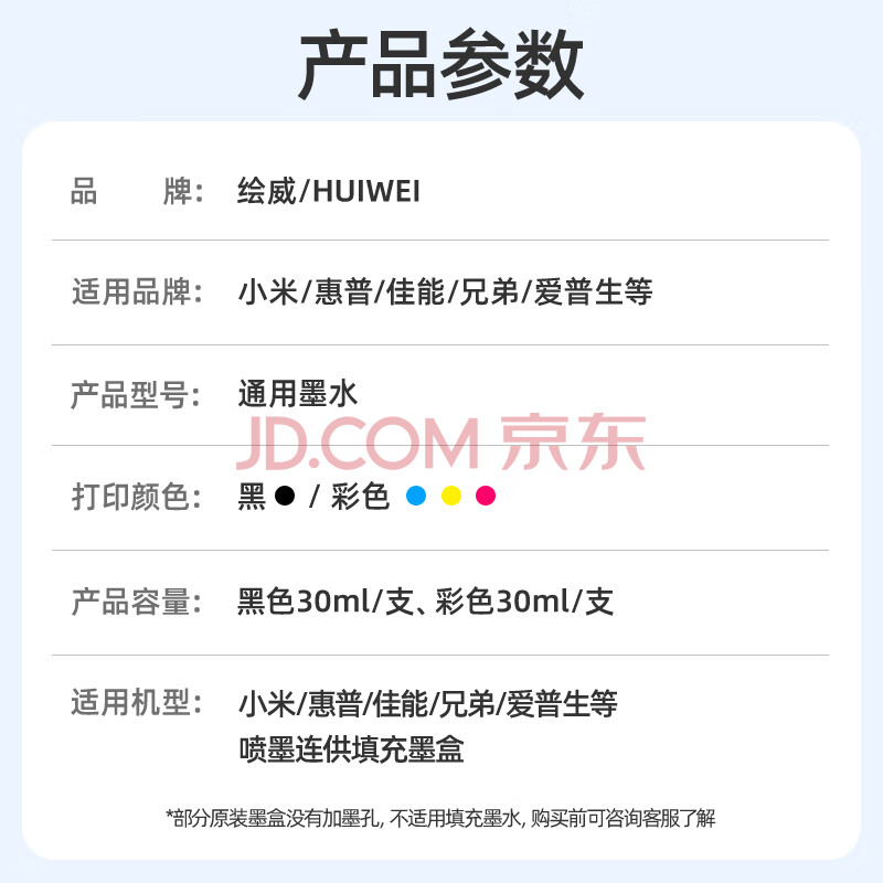 商品相册:绘威惠普805墨盒墨水 适用hp deskjet 2700 2720 2721 2723 2729 1212喷墨打印机墨水 30ml彩色填充墨水 四色套装第