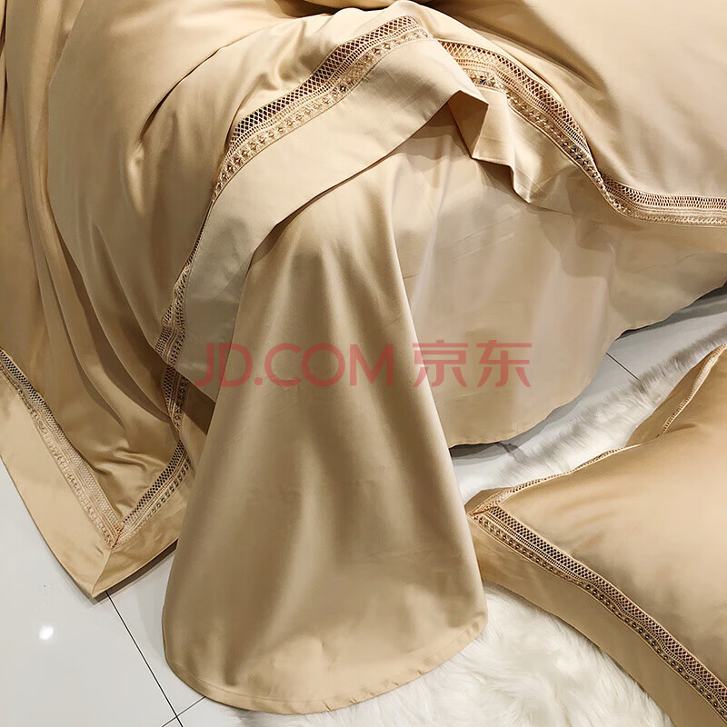 商品相册:La TorrettaA类长绒棉四件套 140支纯色镂空全棉床上被套床单 摩登- 香槟金 被套220*240cm 床单款第