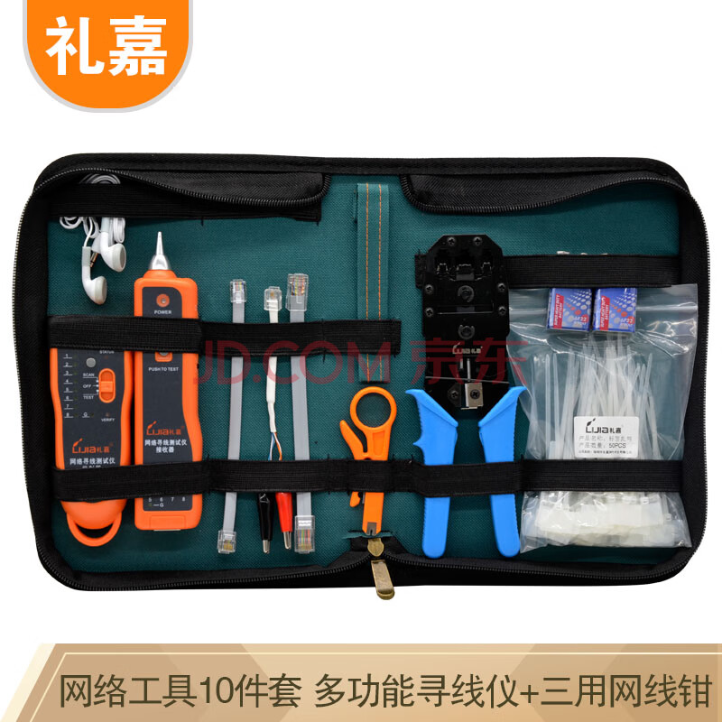 商品相册:礼嘉 LJ-6810T 网络寻线仪套装 网线巡线器 查线机工具包 布线套装 三用网线钳工具套装 10件套 工程级第