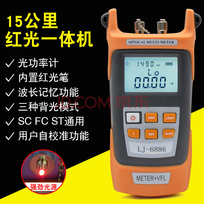 商品相册:礼嘉LJ-6886 高精度光功率计红光笔一体机 15公里红光源红光笔光纤测试仪笔10mw光源光衰检测器 橙色第