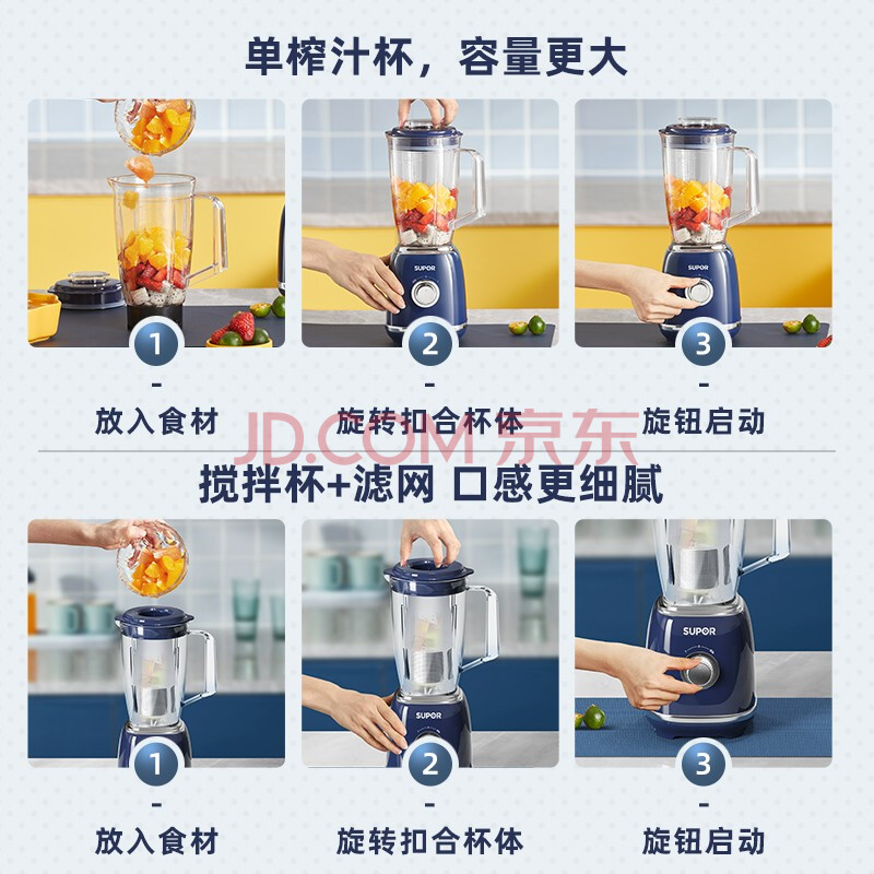 商品相册:苏泊尔(SUPOR)榨汁机家用小巧榨汁杯便携果汁机电动水果机料理机搅拌机婴儿米辅食机 JS42D-300第