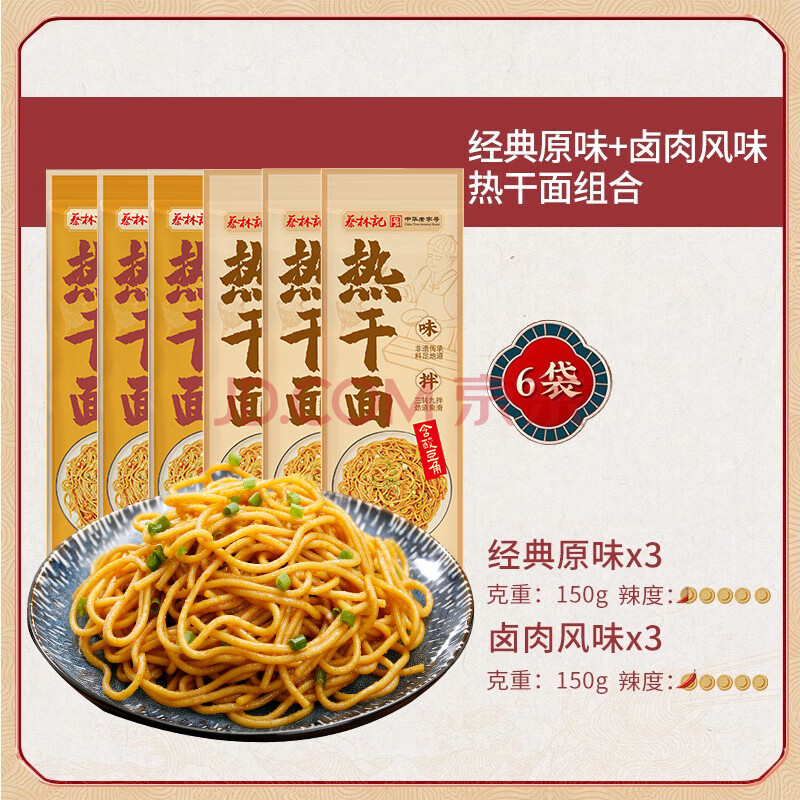 商品相册:蔡林记 武汉风味热干面碱面拌面150克*6袋 热干面 标配+酸豆角早餐宵夜第
