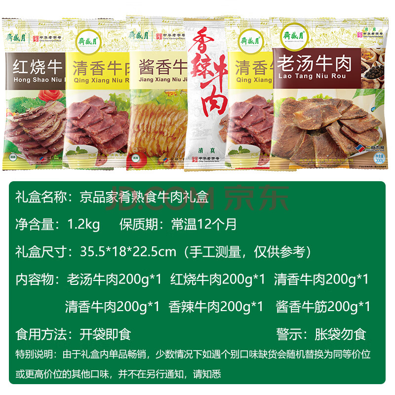 商品相册:月盛斋牛肉清真熟食礼盒北京特产中华老字号年货酱牛肉纯肉礼盒1200g第