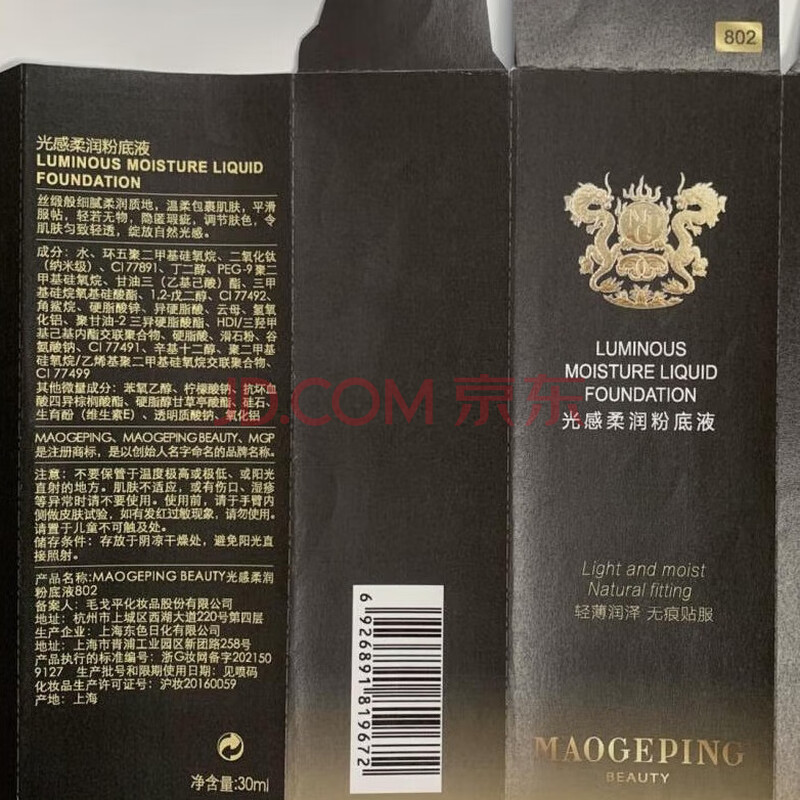 商品相册:毛戈平光感柔润水奶油粉底液M802健康色30ml生日礼物送女友第