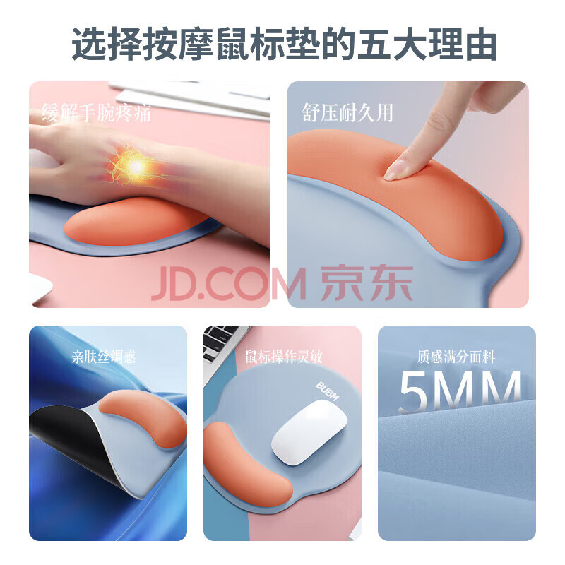 商品相册:BUBM 护腕女手腕垫手托创意简约笔记本电脑鼠标腕托防滑鼠垫护手护腕硅胶鼠标垫男-蓝+湖绿第