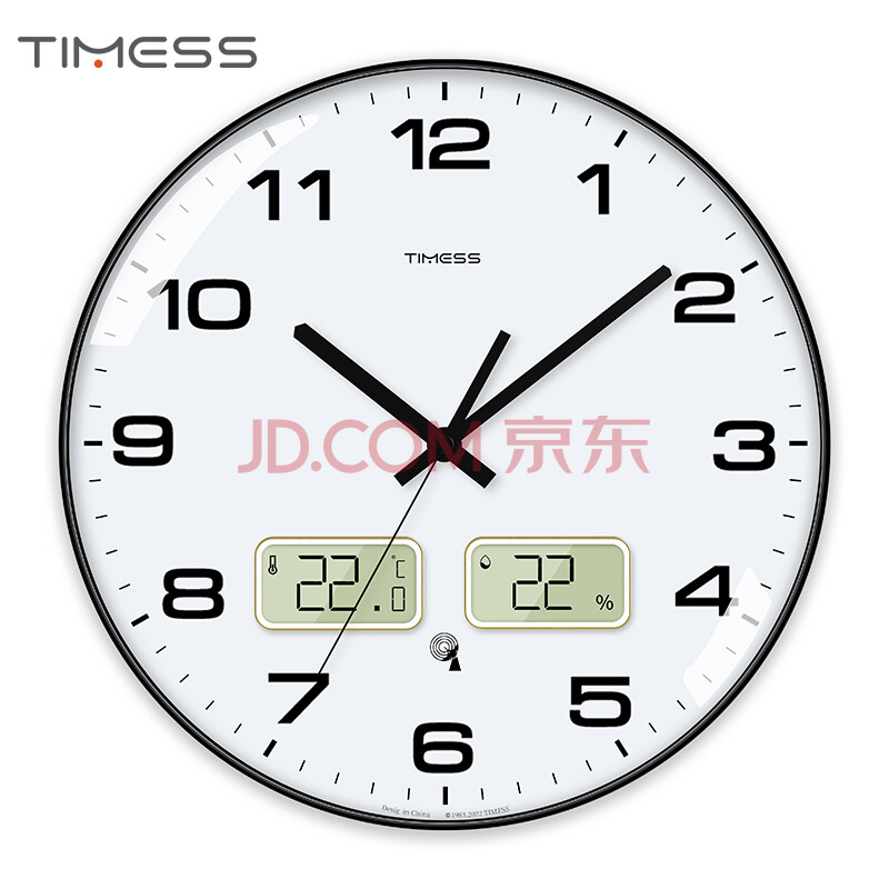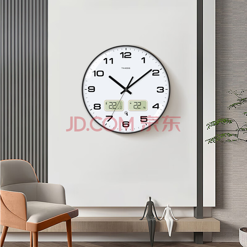 商品相册:Timess挂钟 温湿度自动对时钟表客厅家用时钟卧室电波钟表挂墙36cm第